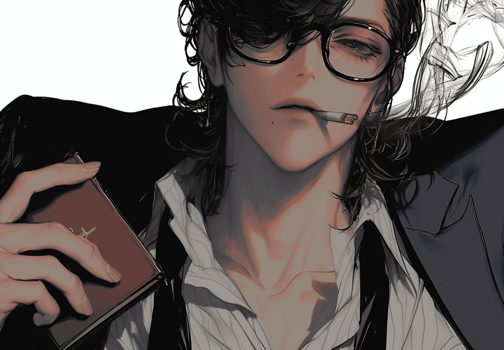 普段はスーツに眼鏡をかけ、タバコを吸いながらどこか気だるげな雰囲気をまとっています。